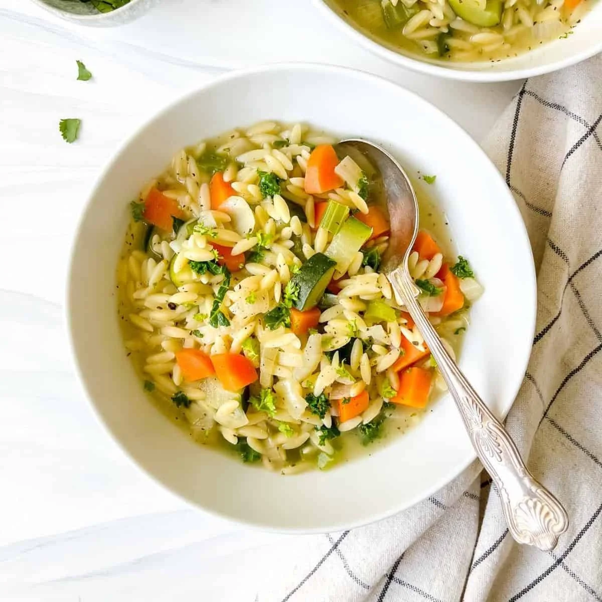Menu › Soup of the Week- Spinach & Orzo Soup Image 1 of 1 Soup of the Week- Spinach & Orzo Soup from $6.00 Served by the quart or bowl Size: Select Size Bowl of Soup Quart of Soup Add To Cart Added! Served by the quart or bowl